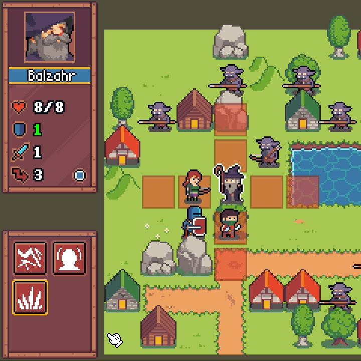 This game was born because I wanted to try to make something somewhat similar to ”Into the Breach” but with another setting and some different mechanics. I loved the idea of having banter between heroes and flesh that out in comparison and when I mentioned the game on social media a lot of people wanted a tactical RPG and not a roguelike. I caved but now I’m thinking that I shouldn’t have and need to be true to my initial ”vision”.