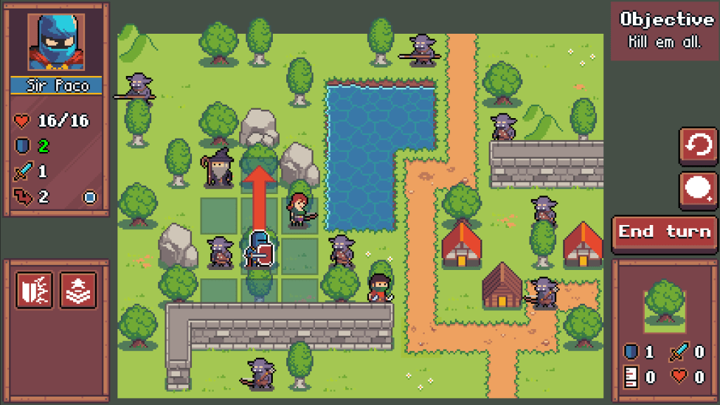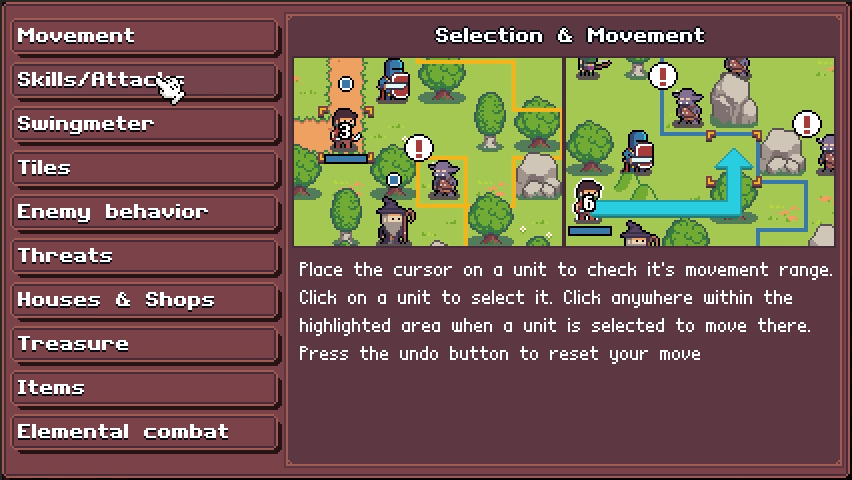 Guardians of Gridvale features an undo button and let’s you move your heroes around to check what positions are the most favourable for you. Put a hero in a position where they will be stomped by several enemies? Press Undo and choose a different position to see how that would play out. Note however that as soon as you perform any other action such as attacking or using any other type of skill, the chance to undo is gone and your current positions are locked until next turn.