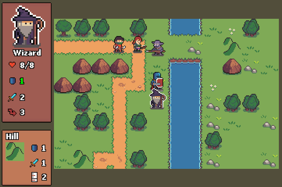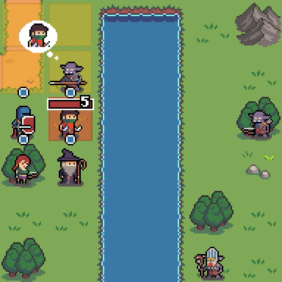 If a unit has more allies in adjacent tiles than enemies, they receive a +1 to their defense, lowering all damage from incoming attacks with 1. If a unit has more enemies than allies surrounding them, they instead get a -1 to their defense, increasing all possible damage to them. If the amount of units is equal, there is no modifier to a unit’s defense. Here’s a video showing how incoming damage changes when units move around: