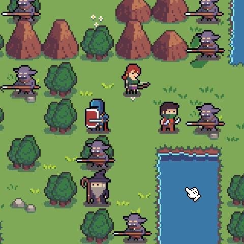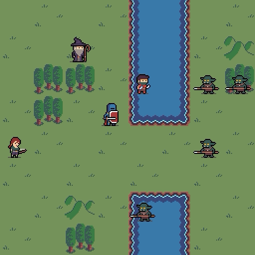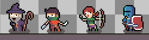 I’ve been working on art that’s 32×32 pixels “big” and noticed that I don’t make proper use of the space so I’ve decided to shrink my graphics to 24×24. This lets me work faster since I’m drawing fewer pixels and has the added benefit of making everything “tighter” and there’s less empty terrain everywhere. Another thing I’ve done is to offset the characters a bit to give the illusion of depth!