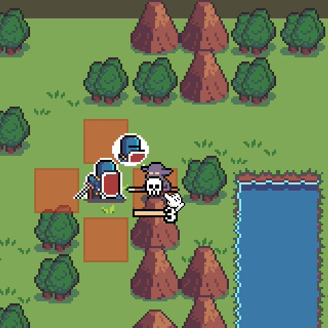 It’s been bothering me for quite some time that the units just vanish once they die and the other day I was feeling a bit bored and decided that I really needed to do something about it so I opened up Aseprite and drew a floaty skeleton cloud type thing when the enemies die. As usual I limited the amount of frames to 5 which is my limit for effects. For skill animations 2 frames will have to be enough unless something extraordinary happens… Anyway, here’s the animation: